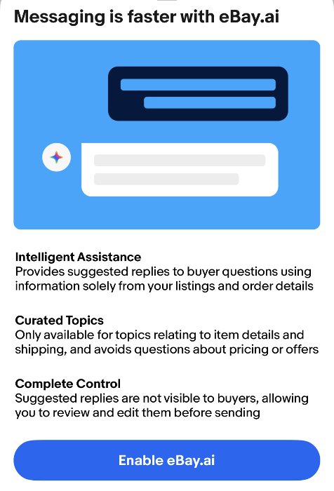 - [My eBay]>[Messages]で「eBay.ai」をオンにする