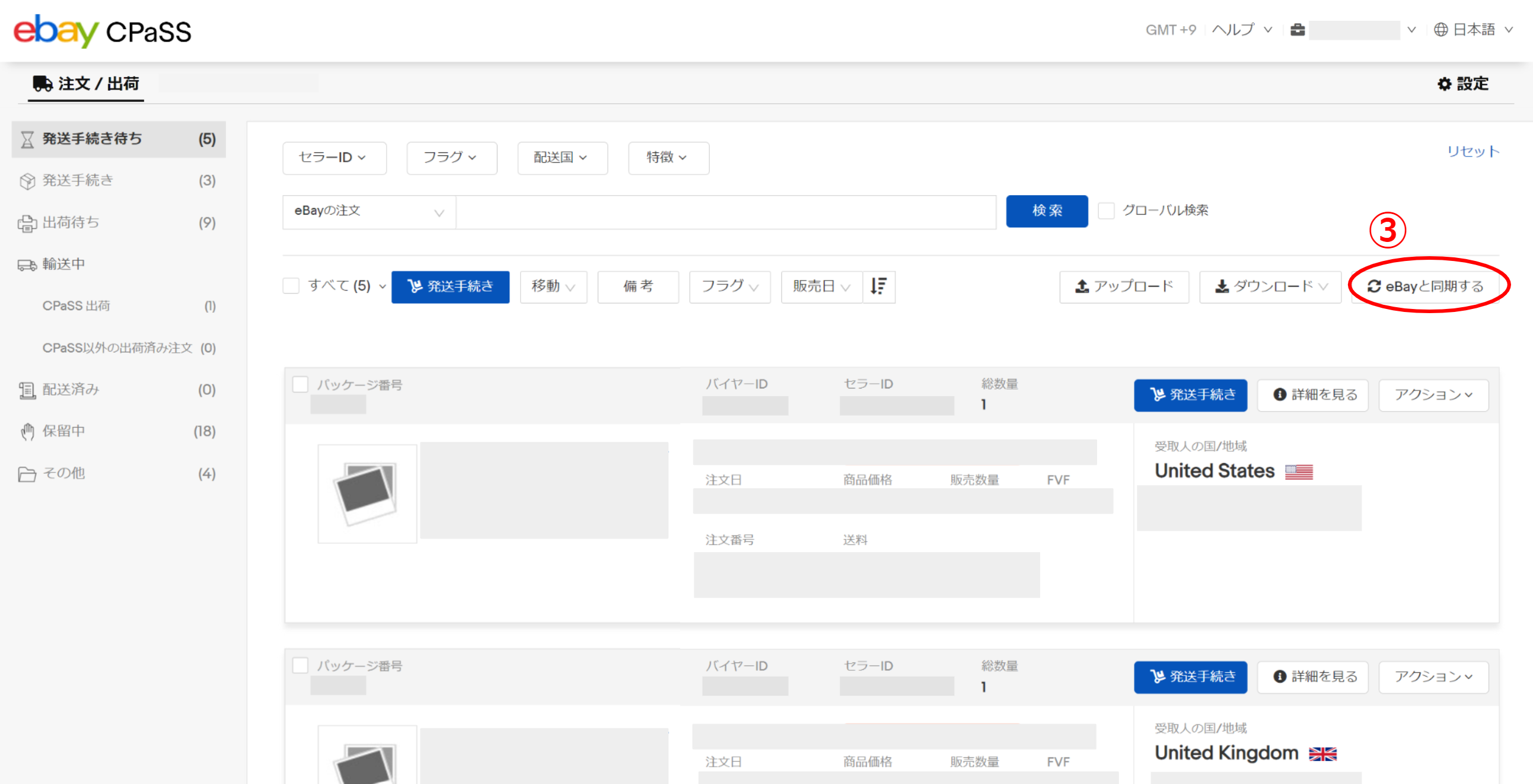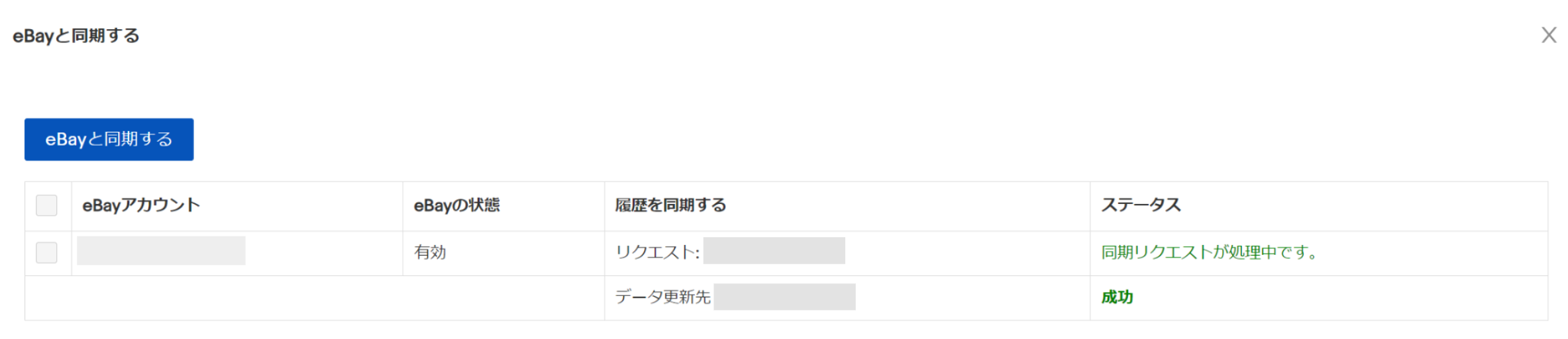 - ③の[eBayと同期する]をクリックすると、同期されていない注文情報を手動で同期できます。
