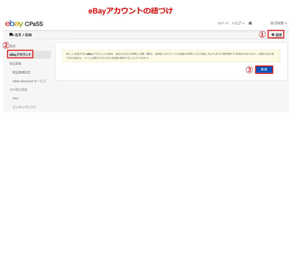 ※新しく追加されたeBayアカウントの場合、注文の同期に10~30分、過去3ヶ月のすべての履歴の同期には注文量にもよりますが数時間かかる場合があります。
